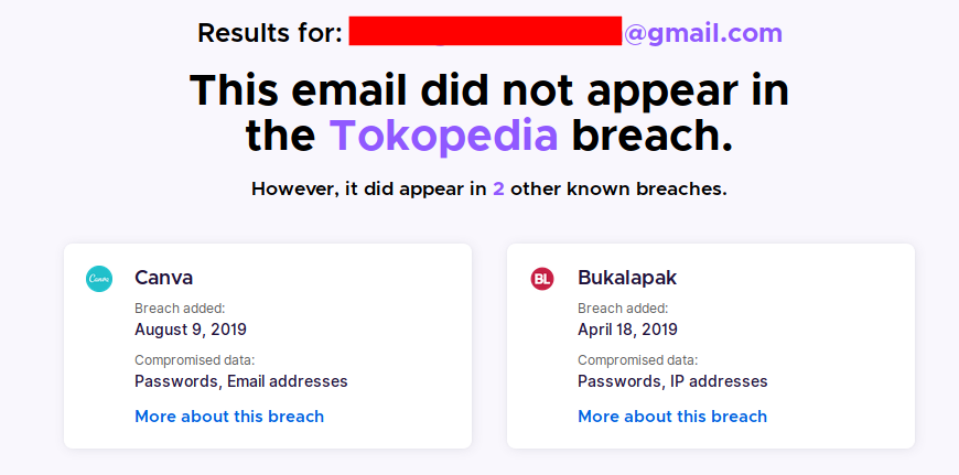 Adapun tips buat cek apakah email (dan data pribadi) kalian nyangkut di kasus databreach Tokopedia.