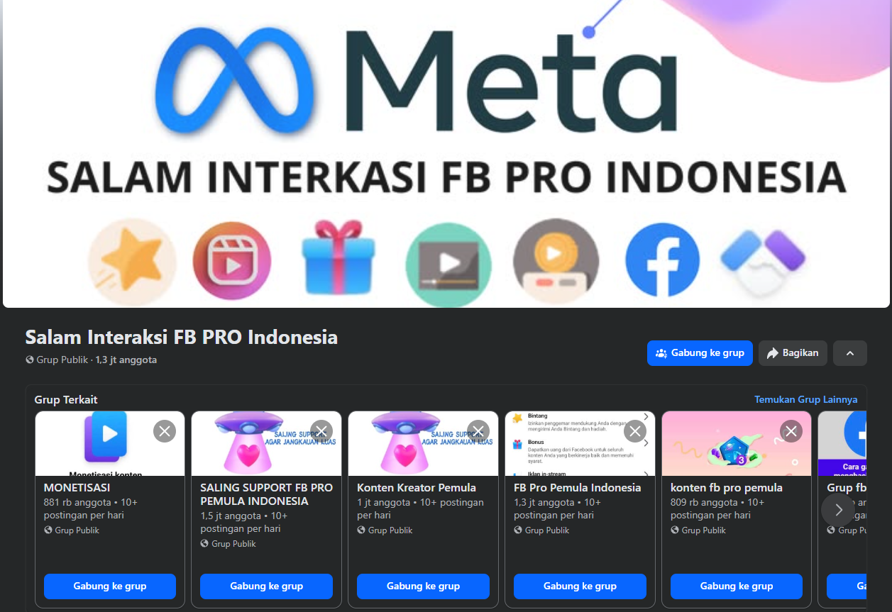 Sekilas terlihat seperti komunitas kreator yang saling mendukung. Deskripsinya ramah, penuh semangat berbagi, dan dipenuhi ribuan anggota dari berbagai latar belakang ibu rumah tangga, pekerja kantoran, remaja, bahkan pensiunan. Tapi ketika diamati lebih dalam, grup ini bukan sekadar tempat berbagi konten, melainkan mesin pengulangan pola algoritmik.