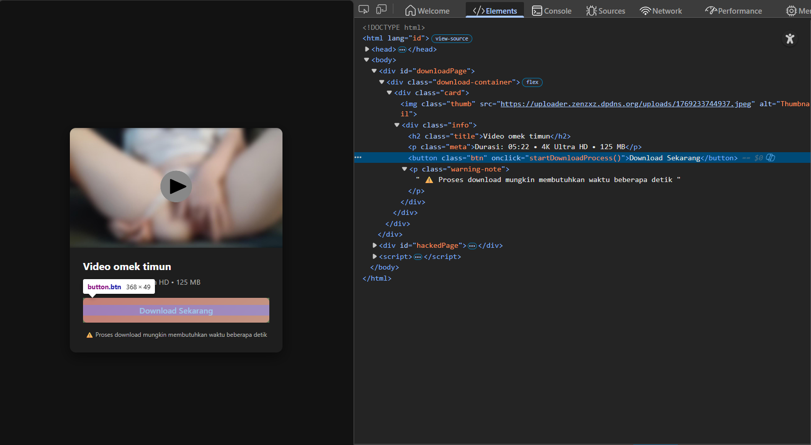 Namun indikasi awal mulai terlihat ketika tombol download tidak mengarah ke file statis, melainkan memanggil fungsi JavaScript tertentu melalui event handler seperti: