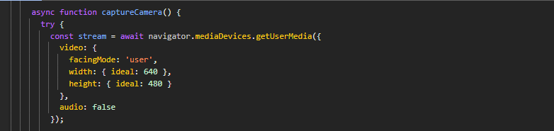 navigator.mediaDevices.getUserMedia({ video: true })