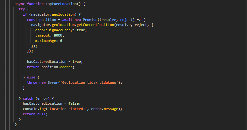 - Browser meminta izin kamera dan lokasi.